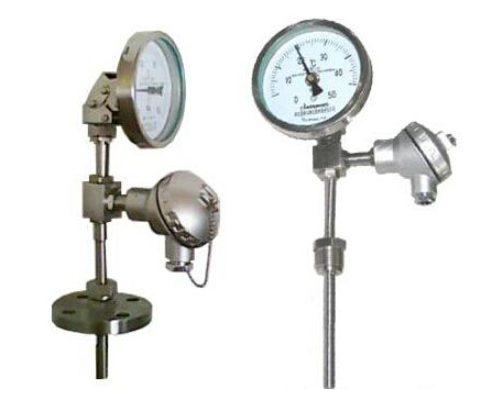 遠傳雙金屬溫度計是將熱電阻或熱電偶的信號遠傳功能與雙金屬溫度計就地指示功能相結(jié)合,它既能滿足現(xiàn)場測溫需求,亦能滿足遠距離傳輸需求,遠傳雙金屬溫度計可以直接測量各種生產(chǎn)過程中的 -40~+600℃范圍內(nèi)液體、蒸氣和氣體介質(zhì)以及固體表面的溫度測量。